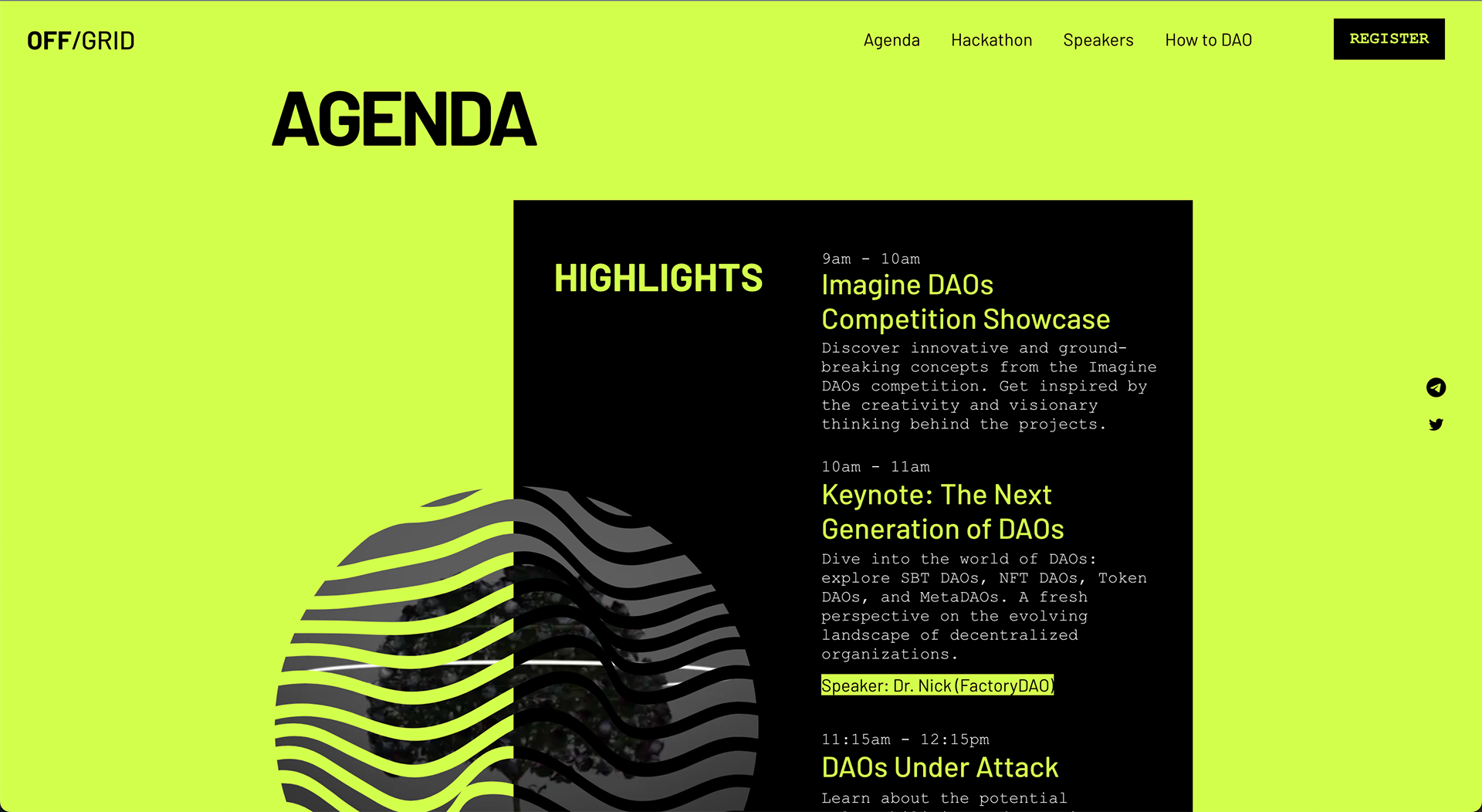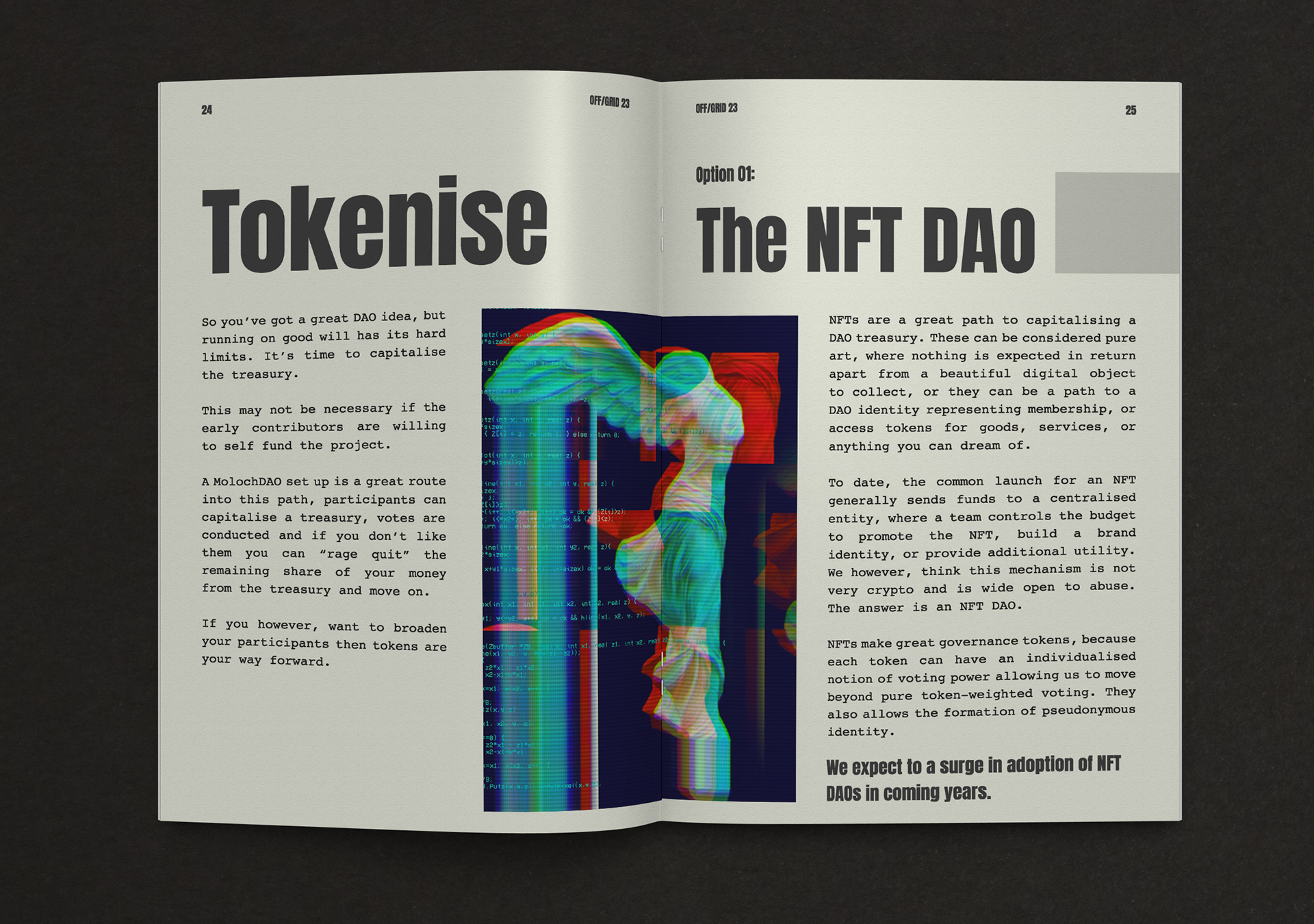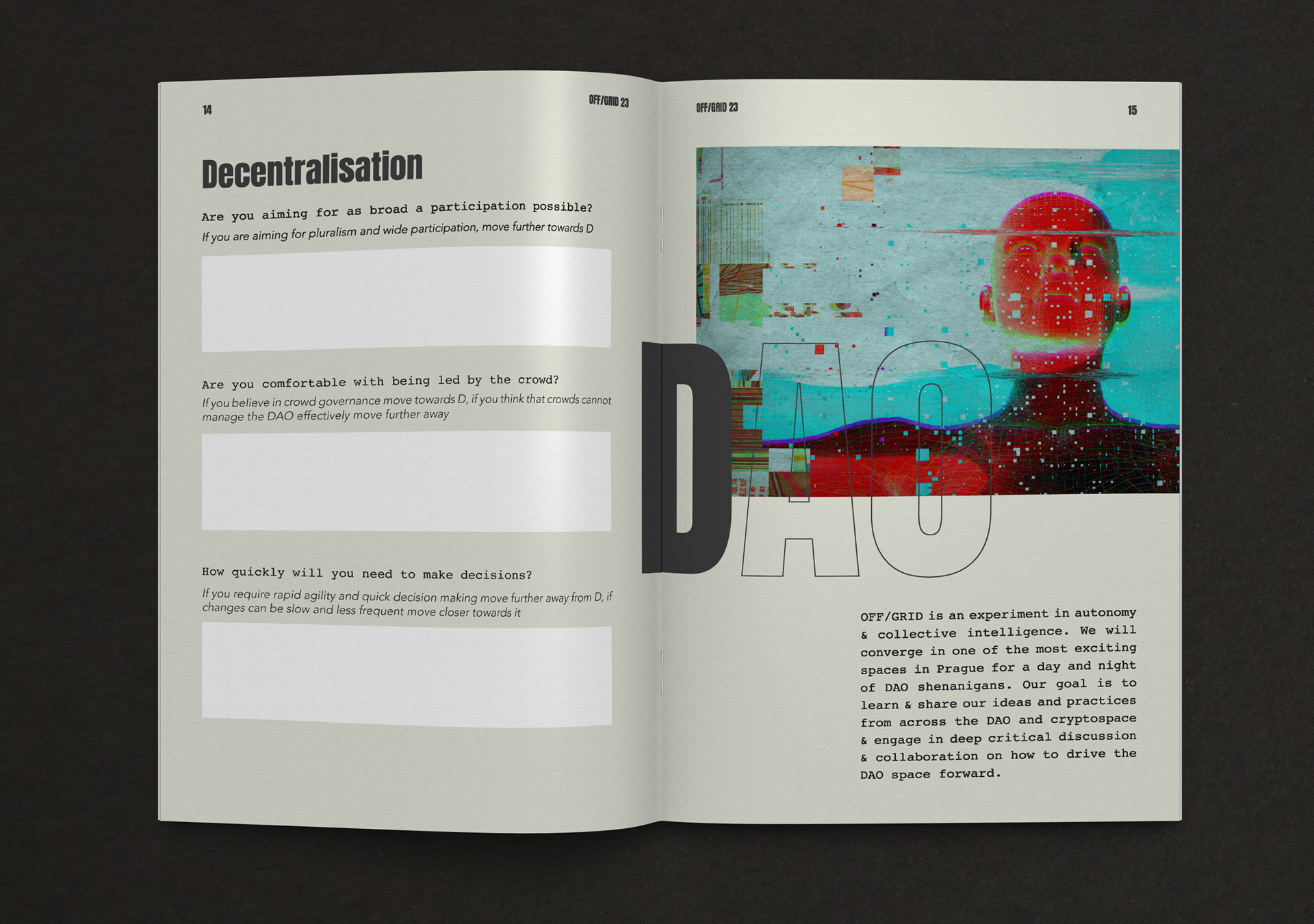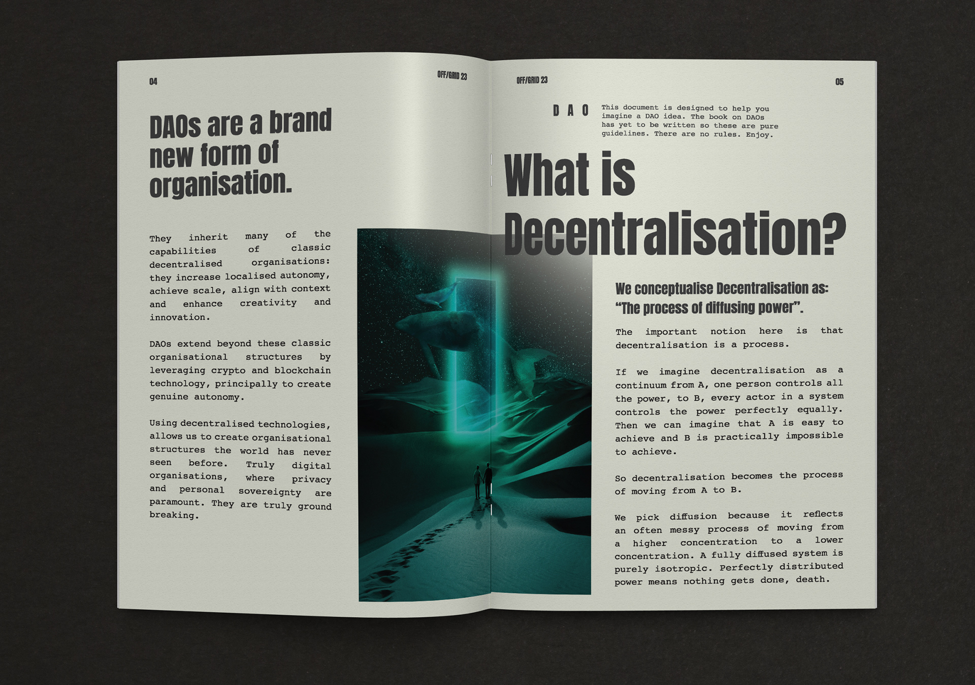 OFF/GRID is an experiment in autonomy & collective intelligence. The goal of the event is to learn & share ideas and practices from across the DAO and cryptospace & engage in deep critical discussion & collaboration. Branding, NFT design, merchandise design and production, event design, book design and production, webdesign.